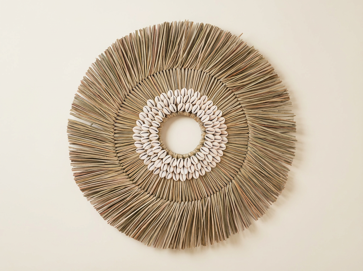 All pieces are finished in natural tones and selected to create a layered wall and surface styling concept that complements solid teak and rattan furniture.