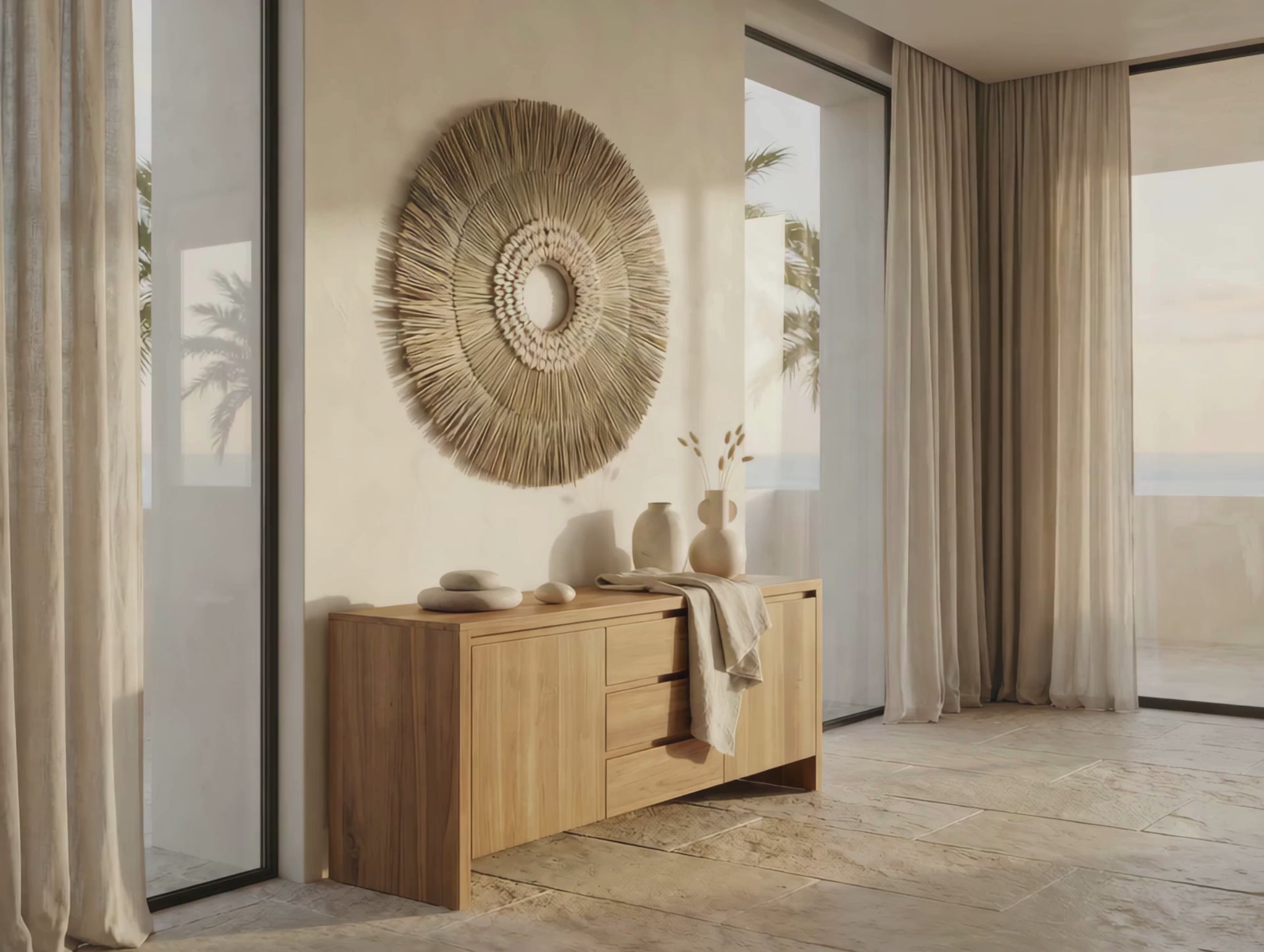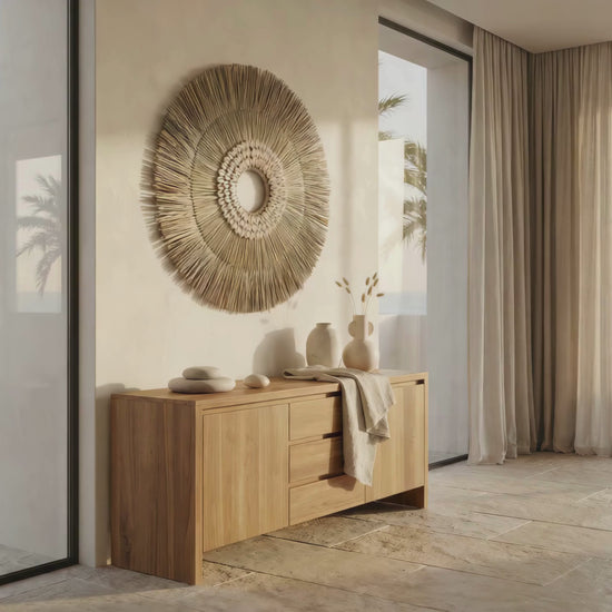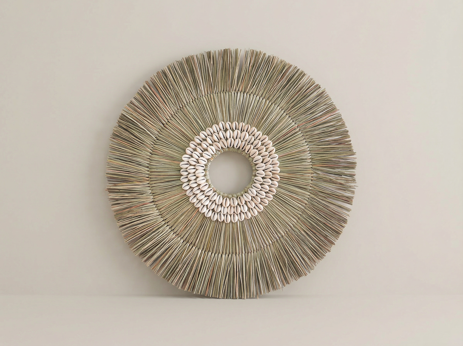 The Solaya Wall Circle Large is a statement wall piece woven from natural mendong grass, designed to bring soft texture and organic depth into modern interiors.