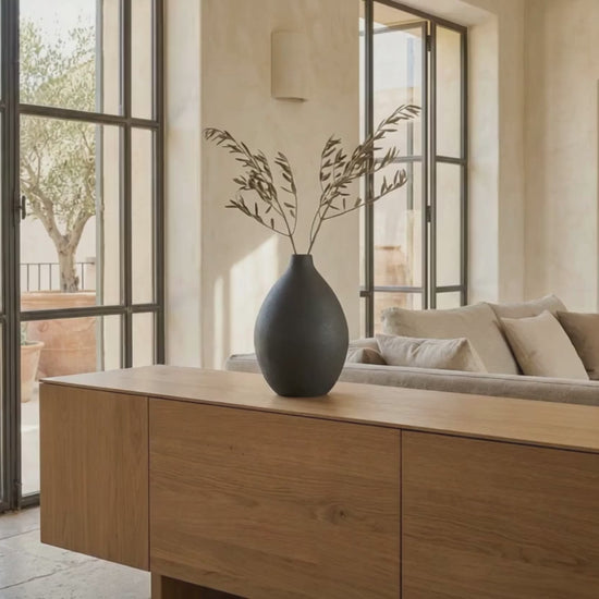 Perfect for shelves, consoles, sideboards, or dining tables, this vase works beautifully as a standalone object or styled with dried branches or minimal floral arrangements.