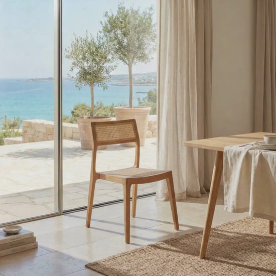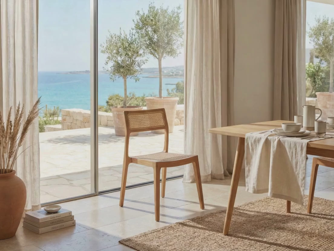 Inspired by Balinese craftsmanship yet tailored for modern Mediterranean homes, this chair pairs beautifully with natural stone, wood, and neutral fabrics — ideal for dining rooms, kitchen nooks, home offices, or refined indoor-outdoor living spaces in Cyprus.